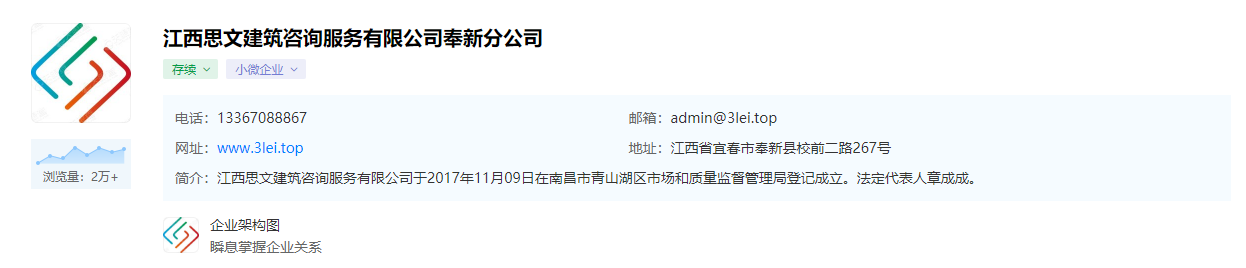 江西思文建筑咨詢服務(wù)有限公司奉新分公司: